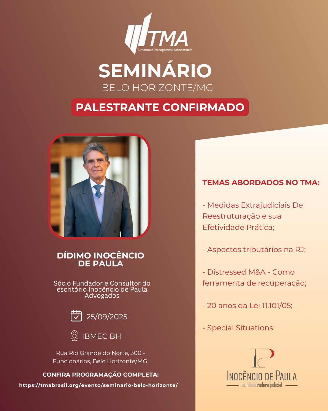 Temos a satisfação de anunciar que o Dr. Dídimo Inocêncio de Paula, sócio fundador do Inocêncio de Paula Advogados, será palestrante no 07º Seminário em