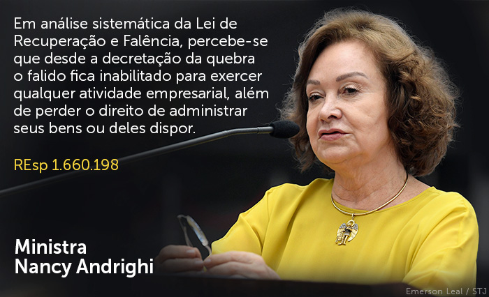A relatora do REsp 1.660.198, ministra Nancy Andrighi, explicou que a legislação não condicionou os efeitos da falência à publicação da sentença de quebra. O motivo, segundo ela, é a própria natureza jurídica declaratória da sentença de falência: após a sua edição, a pessoa, os bens, os atos jurídicos e os credores do empresário falido são submetidos a regime específico, diferente do regime geral de obrigações.
